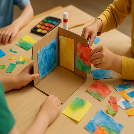 I våra workshops för barn 7–9 år får barnen skapa, leka och upptäcka sin fantasi genom färg, form och rörelse.
